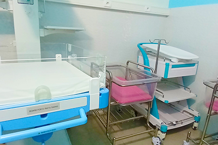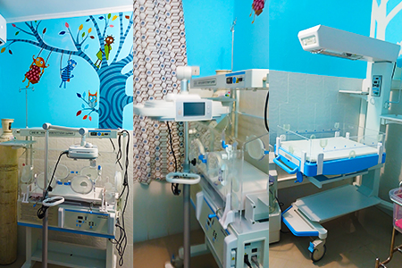 - 1 service de réanimation néonatale : d’une capacité de 5 couveuses, équipé de table de réanimation, respirateurs, photothérapie conventionnelle et intensive.